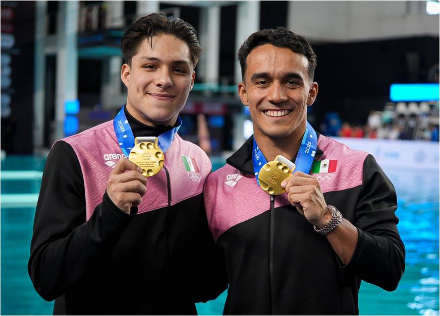 El Himno Nacional Mexicano sonó con fuerza en el Centro Acuático Metropolitano de Guadalajara, luego de la extraordinaria actuación de Osmar Olvera y Juan Manuel Celaya, quienes se consagraron campeones en la prueba de trampolín sincronizado varonil 3 metros, durante la jornada final de la Copa del Mundo de Clavados 2025 que se celebra en el Centro Acuático Metropolitano del CODE Jalisco.