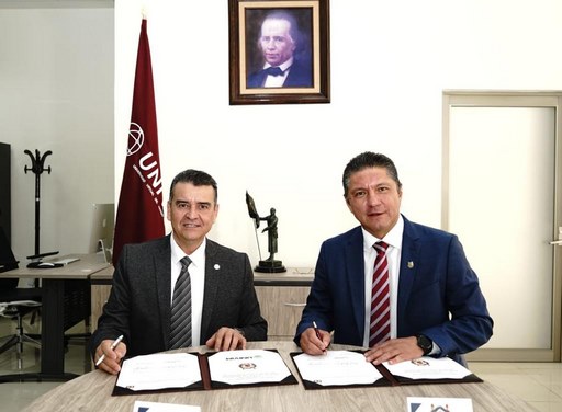 El rector de la Universidad Michoacana de San Nicolás de Hidalgo (UMSNH), Raúl Cárdenas Navarro y el rector de la Universidad Virtual del Estado de Michoacán (UNIVIM), David Mendoza Armas, firmaron convenio de colaboración y de apoyo interinstitucional para establecer acciones que conlleven a fortalecer los servicios que prestan estas instituciones educativas.