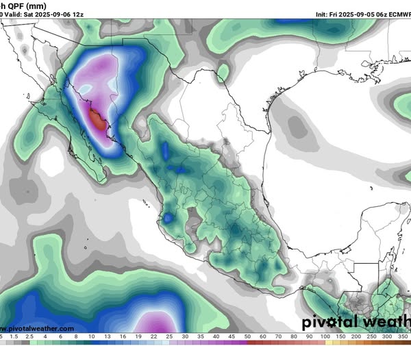 Hoy 5 de septiembre, se pronostica el potencial de registrarse precipitaciones en el noroeste, bajío, centro, occidente y sur del país debido a los remanentes del ciclón tropical #Lorena y el desarrollo de vaguadas en superficie.