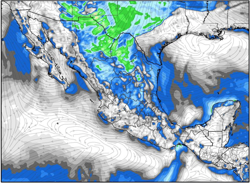 Viernes, incrementado las lluvias y viento debido al ingreso de un nuevo sistema frontal en México.